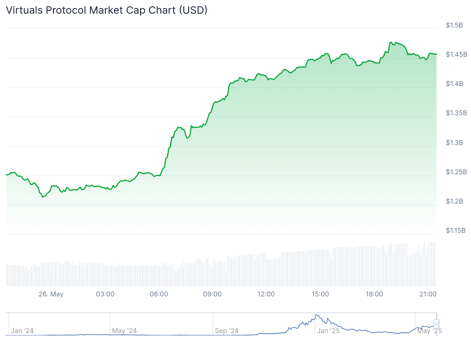 I principali token di intelligenza artificiale stanno registrando un forte rialzo: il settore ora è valutato a oltre 30,6 miliardi di dollari. A guidare l’impennata c’è Virtuals Protocol ($VIRTUAL), che ha registrato un balzo del 7,2% nelle ultime 24 ore e ora vanta una capitalizzazione di mercato di 1,53 miliardi di dollari.
