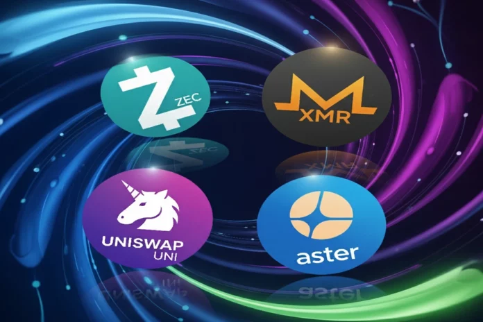 In una settimana dominata dal rosso profondo del mercato crypto, con Bitcoin in calo del 13% su base settimanale e oltre 3 miliardi di dollari ritirati dagli asset digitali, solo quattro criptovalute tra le prime 50 per capitalizzazione hanno registrato guadagni: Zcash (ZEC), Monero (XMR), Uniswap (UNI) e Aster (ASTER).